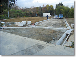 ⓲宅地内に真砂土を敷いて宅地部分は完成しました。道路部分も下地造りは完成。